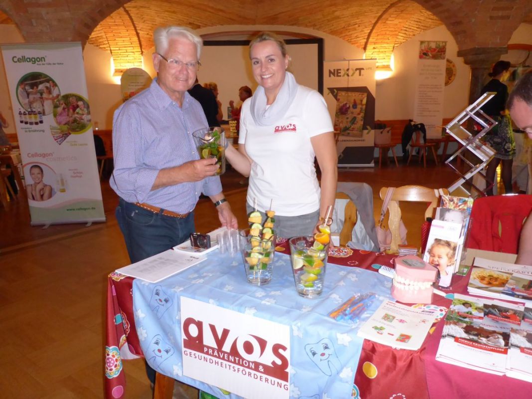 Mitte September fanden die ersten Gesundheitstage für Gneis und Morzg im Lainerhof statt, organisiert von der Interessensgemeinschaft „Unser Gneis“ unter dem Obmann Peter Bankhammer. Das Programm konnte sich sehen lassen: Vorträge u.a. zu den Themen „Was kann jeder selbst für seine Gesundheit tun?“, „Gesundheit ist kein Glücksspiel“, „Brot, Müsli, Semmeln, Nudeln & Co – Fitmacher oder Dickmacher?“ sowie zahlreiche Informationsstände der vor Ort ansässigen Gesundheitsanbieter. AVOS Prävention und Gesundheitsförderung war durch die Gesundheitserzieherin Kerstin Gmeinhart mit der Trinkoase und Information zu Zahngesundheit für Kinder vertreten und wurde von Obmann Peter Bankhammer herzlich begrüßt (Foto).