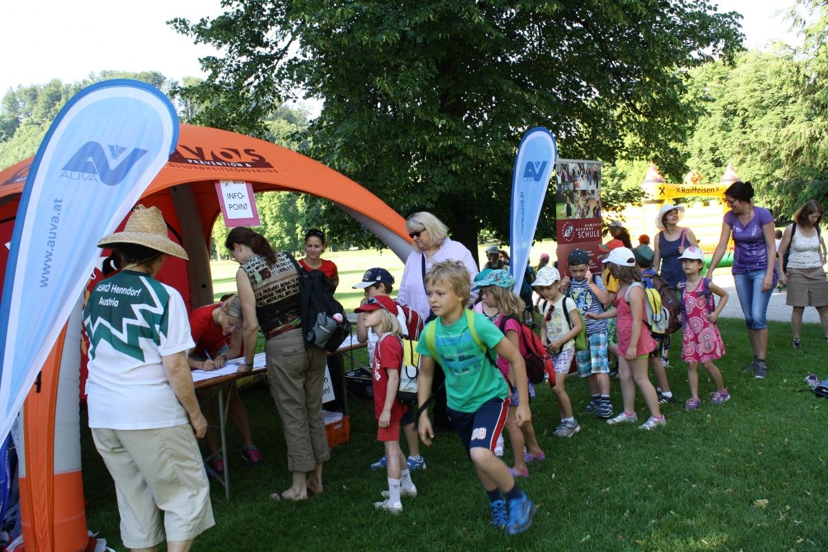 Großer Andrang im Schlosspark Hellbrunn: Auf der Jagd nach Kontrollpunkten und Stempeln tummelten sich am Mittwoch über 1.400 Kinder aus mehr als 20 Salzburger Schulen im Schlosspark von Hellbrunn. Gemeinsam mit ihren Lehrkräften waren sie der Einladung von AVOS gefolgt und nahmen mit riesiger Begeisterung am siebenten Orientierungslauf der „Bewegten Schulen" teil. Erstmals waren nicht nur Volksschulkinder, sondern auch Abordnungen aus bewegten Haupt- und Neuen Mittelschulen dabei. Für den reibungslosen Ablauf sorgten der ASKÖ Henndorf, die AUVA-Landesstelle Salzburg und das AVOS-Team.