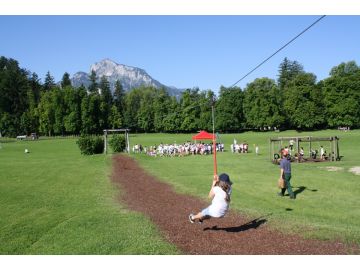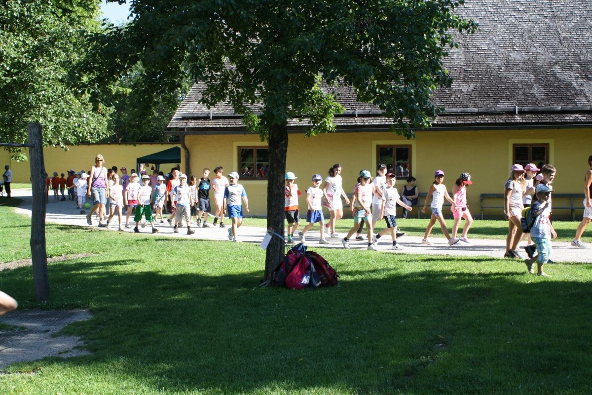 Wer alle Punkte gefunden und sämtliche Stempel gesammelt hatte, konnte sich auch noch beim „WISBI-Lauf" beweisen: Dort absolvierten die Kinder alle Kontrollstellen laufend, denn „WISBI" steht für „Wie schnell bin ich?". Nach dem Zieleinlauf verglichen alle neugierig ihre Ergebnisse. Als Alternative standen eine Wanderung über den Hellbrunner Berg, ein Besuch im Zoo oder ein Abstecher zu den Wasserspielen am bunten Programm.