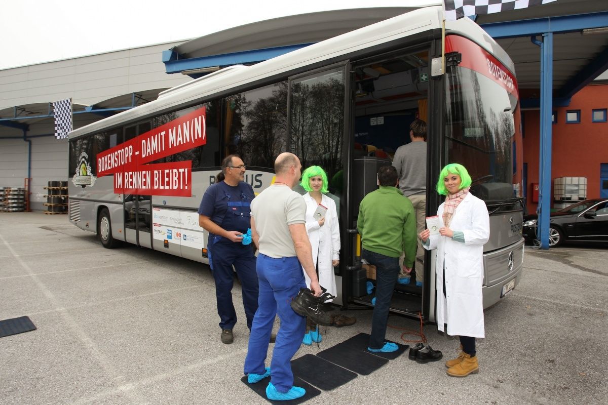 Von 20. bis 27. November stand Salzburg wieder ganz im Zeichen der Männergesundheit. In dieser Aktionswoche tourte ein "Männergesundheitsbus" durch das ganze Bundesland und machte Halt bei sechs Industriebetrieben. Dort konnten die Mitarbeiter vor Ort zum Boxenstopp antreten und Werte wie Blutdruck oder BMI ermitteln lassen.