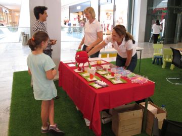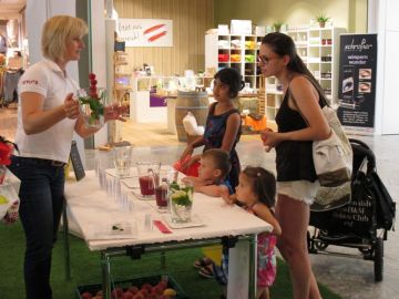 Freitag und Samstag waren unsere Gesundheitserzieherinnen und Maskottchen Avolino unterwegs in der Shopping Arena. Es gab Tipps und Tricks rund um die Zahngesundheit sowie eine Trinkoase, die Informationen zum gesunden Trinken gab. Auch Shoppingcenter-Managerin Mag. Sabine Gabl (li., mit Simone Sommerauer) schaute vorbei.