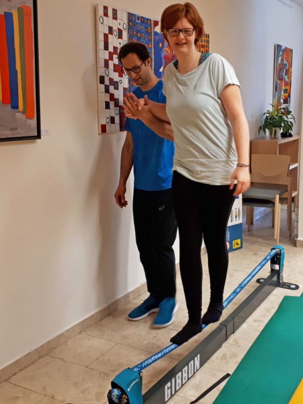 Die beiden haben zudem beim aktuellsten Termin noch eine Überraschung im Gepäck gehabt: Eine Slackline, mit der die Teilnehmerinnen und Teilnehmer ihre Balance testen und trainieren konnten. Doch nicht nur für das Spazieren oberhalb des festen Erdbodens, sondern auch für Yoga-Übungen wurde das neue Trainingsgerät eingesetzt. Zudem sind auch altbekannte Elemente des Zirkus – wie das Jonglieren – nicht zu kurz gekommen.