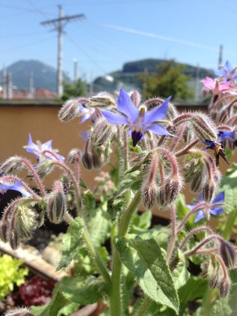 Wir haben Ende Juni, der Garten existiert seit gut zwei Wochen und aufgrund der wohlig-warmen Temperaturen steht die erste Ernte an. Im Angebot haben wir Mangold, Petersilie, Schnittlauch, Melisse und Minze, Erdbeeren, Pfefferoni und Borretsch! Jetzt stellt sich vielleicht einigen die Frage: Was ist Borretsch? Kann man das überhaupt essen? Ja, kann man :-) Schmeckt auch ziemlich gut muss ich sagen.