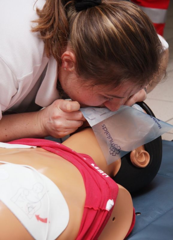 Das Rote Kreuz stellte einen Defibrillator vor und zeigte Interessierten dessen Benutzung. Sie konnten sich im Anschluss selbst an einer simulierten Wiederbelebung versuchen.