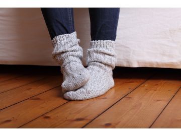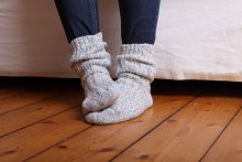 - Laufen Sie in der Wohnung möglichst oft in warmen Wollsocken – aber ohne Schuhe – umher