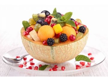 - Frische Früchte oder Fruchtsalat aus Äpfeln, Kiwis, Birnen, Trauben, Papayas.