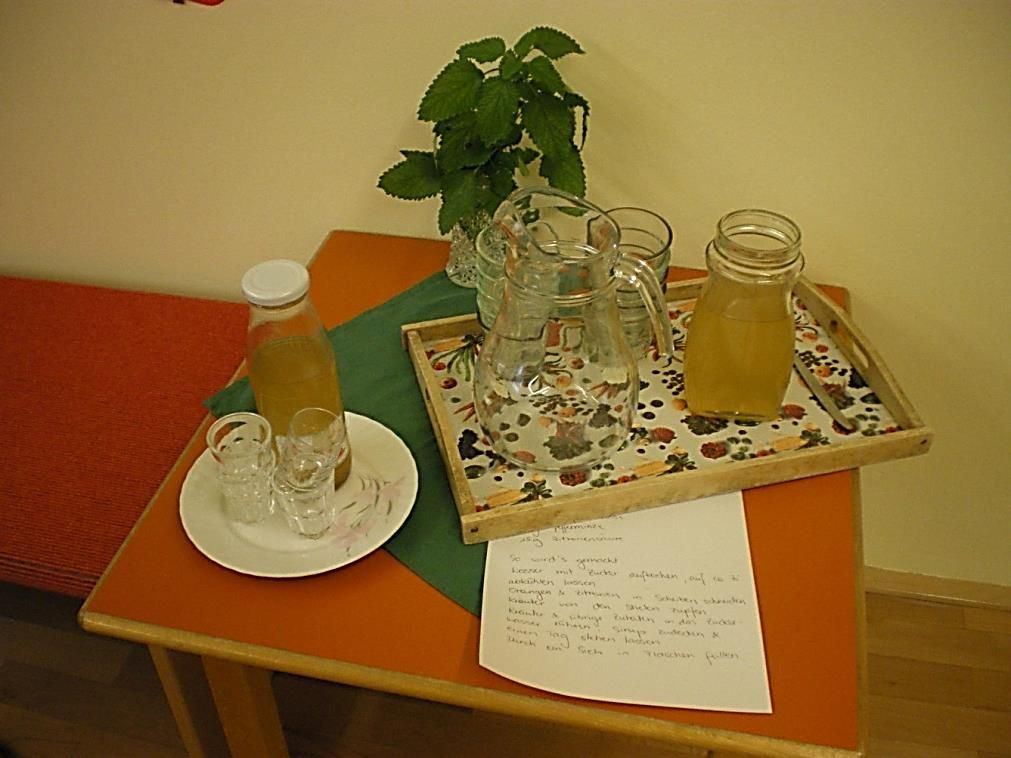 Bei unseren Geburtstagsfeiern im Laufe des Kindergartenjahres wird der Sirup als Geburtstagssaft verwendet und im Advent bekamen alle Familien ein kleines Doserl mit getrockneten Garten-Teekräutern mit nach Hause.