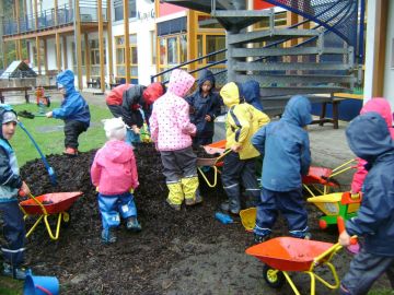 So konnten alle Entwicklungsschritte, von der Planung - zur Durchführung - Bau - Materialbeschaffung - Befüllung und letztendlich Bepflanzung und Pflege miterlebt werden. Nun freut sich das ganze Kindergartenhaus auf die große Ernte!