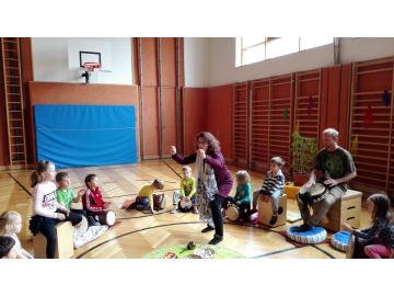 Der zweigruppige Gemeindekindergarten Stuhlfelden hat als „Gesunder Kindergarten“ in Zusammenarbeit mit der Musik- und Tanzpädagogin, Alexandra Duzikova und ihrem Mitmusiker Hans Jürgen, ein dreitägiges Musikprojekt gestartet. Ein Projekt, das uns in die Welt der Klänge verschiedener Kulturen und Völker hineinschnuppern, verschiedene Trommeln und ein Kotamo kennen lernen ließ.,Im Wechsel zwischen laut und leise, Ruhe und Bewegung, aktivem Mittun, Zuhören und Lauschen, wurden wir auf musikalische und tänzerische Art verzaubert.