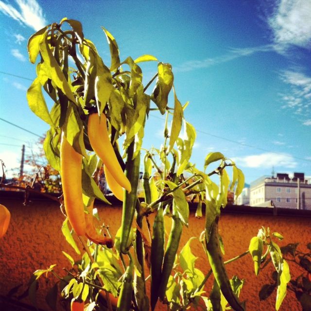 ... geht es auch für unseren Garten langsam in die wohlverdienten Herbstferien! Man glaubt es kaum, aber wir finden Ende Oktober noch zahlreiche sonnengereifte Cocktailtomaten, überaus schmackhafte Erdbeeren, einige Chilis, Petersilie, Mangold und Kräuter in unserem Garten vor. Alles bereit zur Ernte.