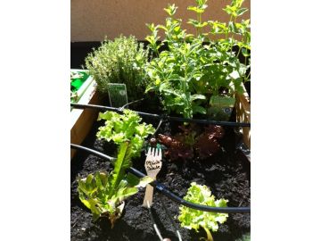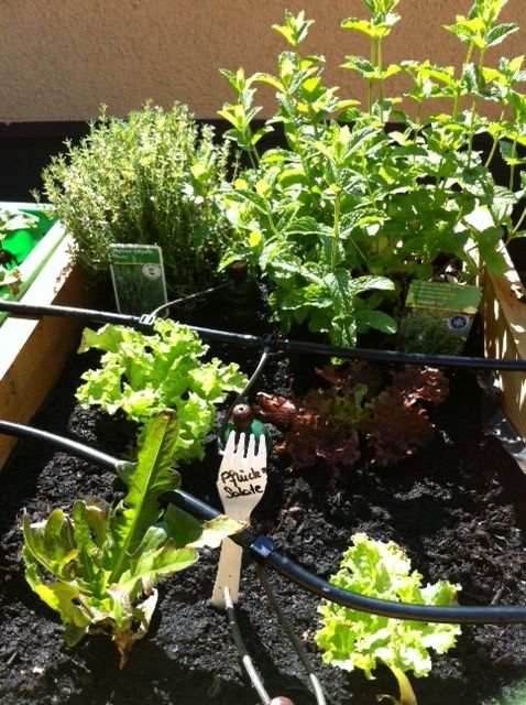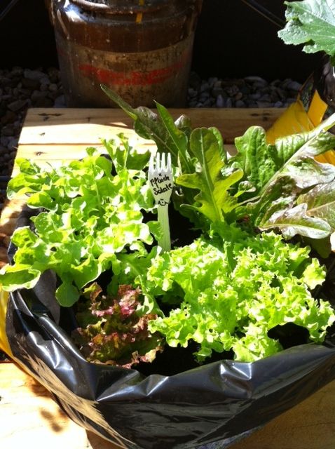 Abschließend darf ich noch ein weiteres Erfolgserlebnis mit euch teilen. Unser Pflücksalat wächst hervorragend im Growbag (entleerter Erdsack). Er ist schon doppelt so groß wie seine zeitgleich gesetzten Kollgen in den Holz- und Blumenkisterl. Dafür mussten wir uns leider von zwei Stück Pflücksalat im Holzkisterl verabschieden. Die zwei waren wohl noch die frostigen Temperaturen vom Mai gewohnt. Jedenfalls kamen zu den restlichen Pflücksalaten im Holzkisterl als neue Nachbarn Thymian und Minze dazu. Ich muss zugeben, die zwei wurden gekauft, um den restlichen Pflücksalaten ein wenig Schatten zu spenden!
