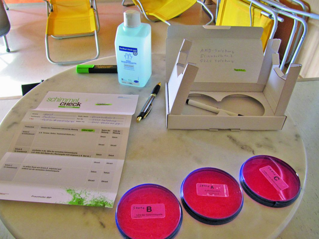 Schimmelpilze können die Gesundheit am Arbeitsplatz schwer beeinträchtigen. Das tatsächliche Ausmaß von Schimmelbefall ist aber häufig mit bloßem Auge nicht erkennbar. Bei Verdacht auf Pilzbefall von Arbeitsräumen führen die Sicherheitstechniker des AMD Salzburg eine Schimmelmessung durch und liefern die Ergebnisse mit Maßnahmenvorschlägen an den Betrieb weiter.