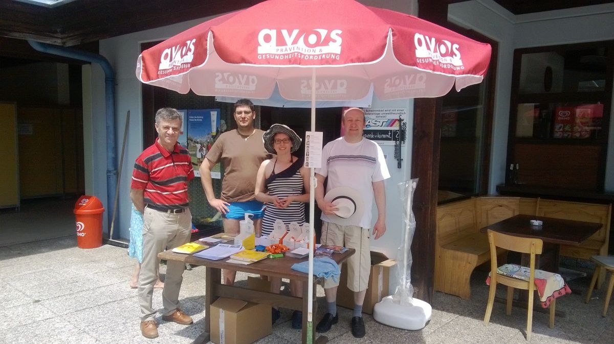 Nachdem durch die Wetterlage der Termin um 1 Woche verschoben wurde, fand nun zum 2. Mal die Hautkrebs-Vorsorge-Aktion "Schmieren & Kassieren" statt. Der Wettergott meinte es mit den Veranstaltern gut und trotz nicht allzu vielen Besuchern im Freibad Werfen, war die Stimmung sehr gut. Den Besuchern des Freibades - es gab ab 13 Uhr freien Eintritt - waren viele Grundsätze zum Thema "Sonne ohne Reue" nicht wirklich bekannt und um so mehr dankbar über die professionelle Information durch den Werfener Apotheker, Hr. Mag. Bernhard Lugger (Sonnenapotheke Werfen). Die Kinder und Jugendlichen hatten mit den AVOS-Luftballons die meiste Freude, da sie diese zu Wasserbomben umfunktionierten. Der Bademeister Rudi nahm´s gelassen hin, da es ja nur an diesem Tag die Luftballons / Wasserbomben gibt. Beim Wissensquiz gaben sich 56 Personen (Alt und Jung, groß und klein) viel Mühe bei der Beantwortung der 5 themenbezogenen Fragen und bekamen als Dankeschön ein paar Sonnencreme-Pröbchen.