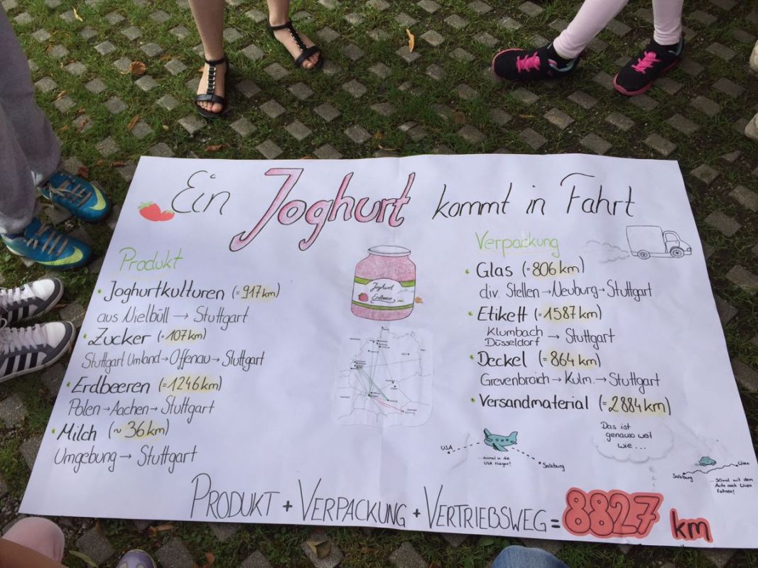 Bei der AVOS-Station wurde fleißig über regionale und saisonale Lebensmittel (vor allem Obst & Gemüse) diskutiert. Anhand eines Quiz konnten wichtige Aspekte rund um das Thema nachhaltige Ernährung verankert werden. Besonders das Plakat "Ein Joghurt kommt in Fahrt!" regte hitzige Debatten an. Es veranschaulichte, wie viele Kilometer ein Erdbeerjoghurt zurücklegen kann, bis es bei uns im Supermarkt zum Verkauf angeboten wird.
