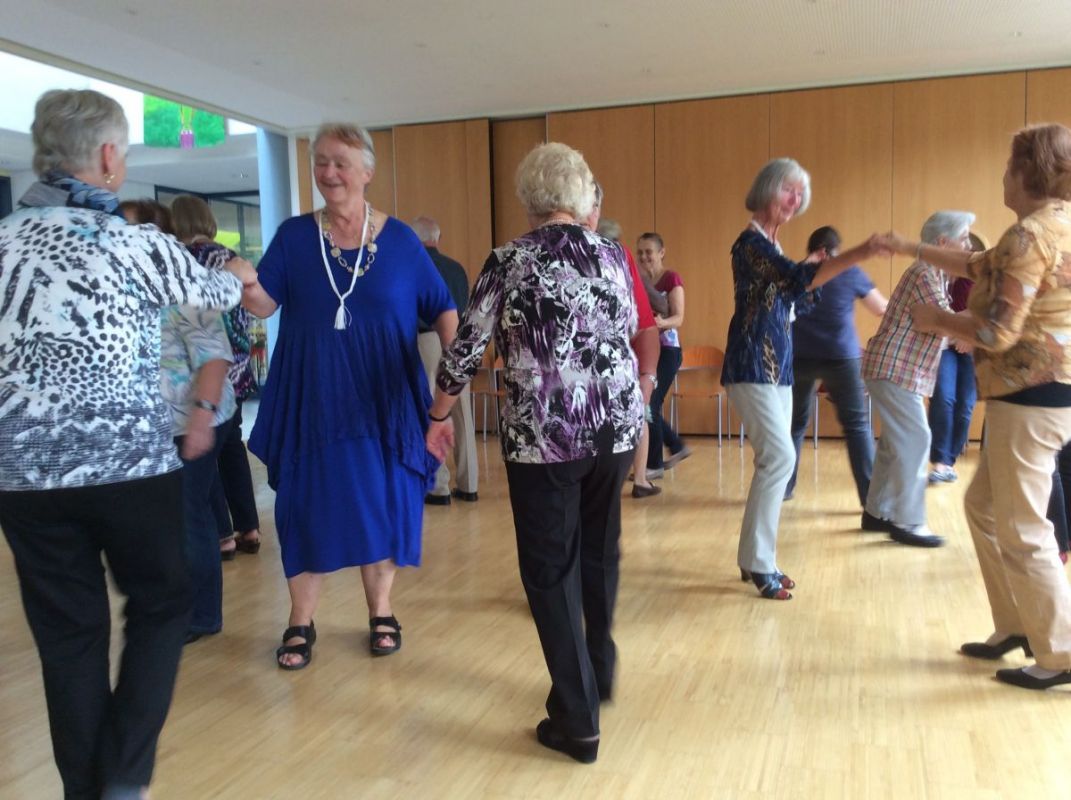 Auch Bürgermeister Wolfgang Wagner tanzte einige Tänze mit. Gefordert war nicht nur die Kondition, Koordination und Balance  sondern auch Konzentration auf die Schrittfolge.