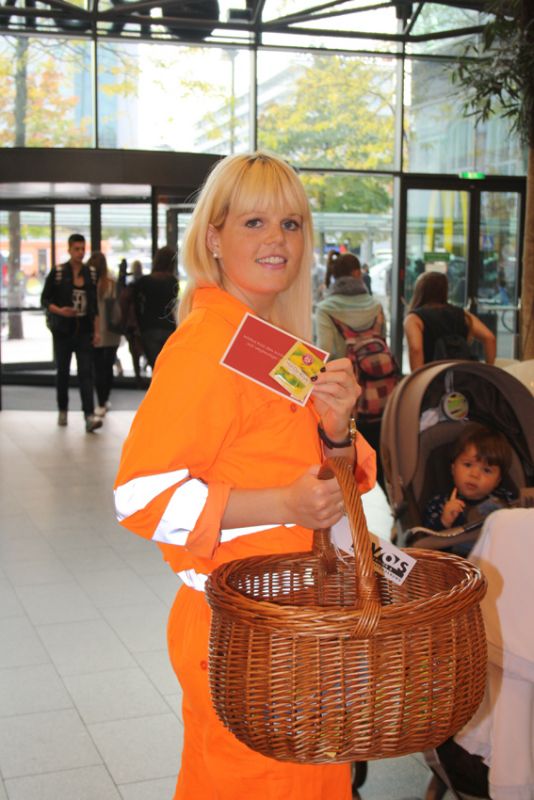Reisende und Bummelnde, die am Freitag, dem 10.10.2014, vormittags am Salzburger Hauptbahnhof im Einkaufszentrum Forum 1 unterwegs waren, wurden mit einem besonderen Geschenk bedacht: Praktikantin Kristin Wehner schlüpfte in den traditionell orangenen Overall der Gesundheitsarbeiterinnen von AVOS und verteilte, anlässlich des Gedenktages, insgesamt 1.000 Postkarten mit klugen Gedanken von Persönlichkeiten wie Rosa Luxemburg, Albert Schweitzer und dem Dalai Lama. Innere Wärme wurde in Form von rund 1.000 Teebeuteln verschenkt.
