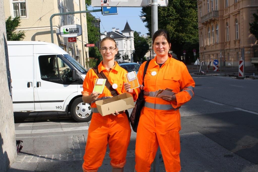 Was die rund 800 Autofahrerinnen und Autofahrer da in die Hand gedrückt bekamen? Eine Postkarte mit Sprüchen, die zum Nachdenken anregten, Entspannungstee und einen Sticker, der mit dem Slogen "Sei ned fad - nimm das Rad" an die zweirädrige Alternative zum Auto erinnerte.
