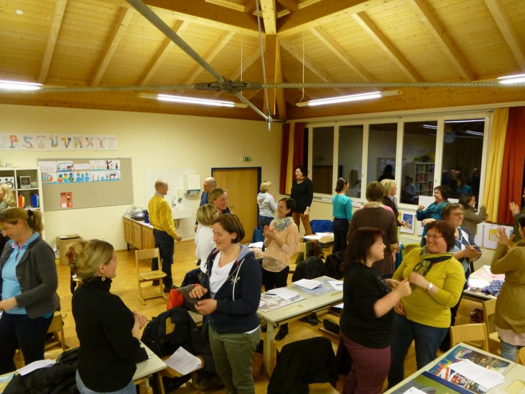 Die Volksschule St. Koloman startete das Projekt im Dezember mit der Pausenberatung. Seitdem verbesserte sich die Pausensituation deutlich und sowohl Kinder als auch LehrerInnen sind mit den Umsetzungen sehr zufrieden. Das Thema „Bewegtes Lernen“ wurde auch hier für Eltern und PädagogInnen gewählt und erfreute sich großer Beliebtheit. Der Fortbildungsnachmittag mit VD Sabine Pürrer und ihrem engagierten Team aus acht LehrerInnen war sehr lustig und alle Praxisbeispiele wurden intensiv ausprobiert. Der schöne Veranstaltungsraum füllte sich beim Elternabend und ein intensiver Abend mit großer Beteiligung und interessanten Diskussionen wurde zur Bereicherung für alle.