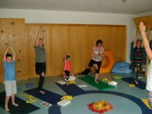 Die Begeisterung ist auch auf unsere Kinder übergeschwappt und so üben sich bereits die Kleinen im "Sonnengruß". Zur Musik und Gesang von Mai Cocopelli ("Sonnengruß") werden die Übungen mit viel Hingabe gemacht!