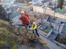Einer der ganz großen Klettersteige im Dachsteingebiet durch die Südwand der Dachsteinwarte, gute Kondition ist erforderlich (Kategorie D/E),