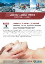 Gesunde Gemeinde Kaprun - Themenkreis Gesundheit "Osteopathie" am Montag, den 9. November 2015 um 18.00 Uhr im Seniorenhaus Margaretha!